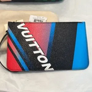 Authentic Louis Vuitton Race Neverfull MM. This was an extreme Limited Edition Collection by LV. Monogram coated canvas with leather trim, boasting a bold graphic design, commemorating Nascar Drag Racing. An immediate sell out upon its release in 2017 and still remains in high demand today. I am the original owner and I used this bag less than a week and then it went into storage. There is no damage, wear, odor, tears or scuffs to both pieces. Corners are free of wear, handles still remain stiff. Bag is not crushed or misshapen. Inside is lined in black leather suede. Lining has light dust from being stuffed with paper, but it's minimal and I will remove before shipping. All golden hardware. 8 inch handle drop, can be worn comfortably on shoulder, elbow or hand carry. Truly an iconic piece and a must for any LV collector. Guaranteed authentic. Includes matching pochette, dust bag, textile and barcode tags. Made in Spain. CA4186. #T9150361574.