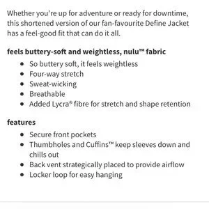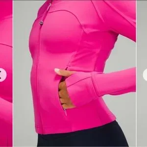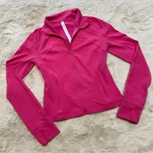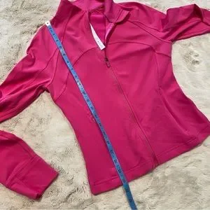 Gently used Lululemon Cropped Define Jacket Nulu in Sonic Pink, size 6. Lulu’s most popular jacket in a cropped Nulu edition! So super soft and comfortable in a flattering cropped fit with front seams, back vent and foldover cuffs. Full front zip with two side pockets. Color is bright like stock photo. Approximate measurements depicted in photos. In good used condition with only very light signs of wear such as minimal sueding.