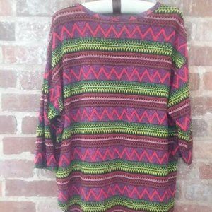 IT'S Multicolor Purple Red Black Boho Aztec Tunic Top Shirt Women Plus Size 1X