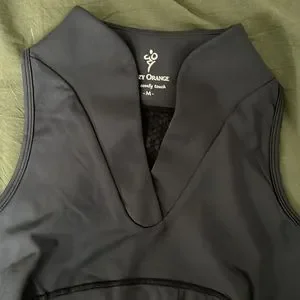 NWOT Woman's Cozy Orange Virgo Tank Racerback. Fitted, eco-friendly top inspired by the meticulous nature of Virgos. Detailed, stylish racer back design with Mandren collar, built in bra top. Chafe-free princess seams for body contouring