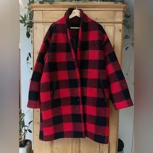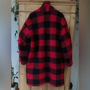 Classic, oversized picnic-plaid is elegantly cut with overcoat design in mind. Bold and beautiful, this statement outerwear has a cool girl, vintage feel that you've got to have during the colder months.