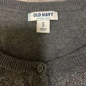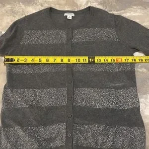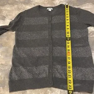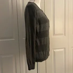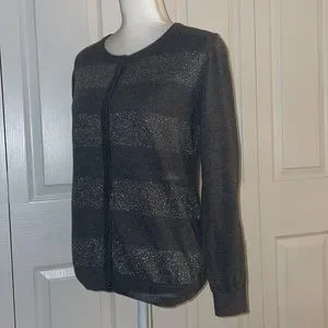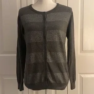 Old Navy Women’s SZ M Grey Striped Metallic Button Down Long Sleeve Cardigan