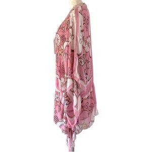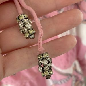 Hundreds of clear diamanté’s decorate this lightweight Kaftan fabric, along with tiny glass tube beads in colours of pink, clear and bronze.