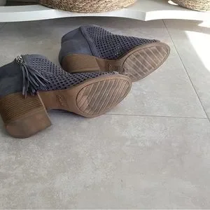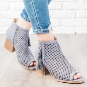 Cupid multi season peep toe ankle boot booties all seasons tassels, qupid, laser cut, grey, gray bootie
