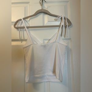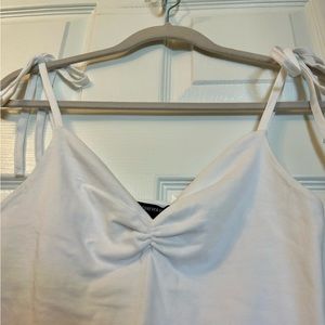 Brand New Condition Forever 21 White Tie Strap Camisole, Size Medium. This camisole has a ruched sweetheart neckline. It features adjustable camisole straps that are meant to be tied for a cute look. 💕
