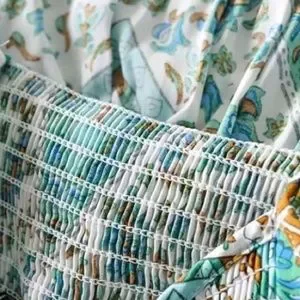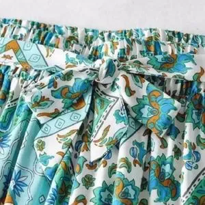 Bohemian floral cropped tank top and wide leg pants set! Crop top has elastic stretch smocking along the bottom hem and a pleated gathered detail. Pants feature an elastic stretch waistband matching belt tie.