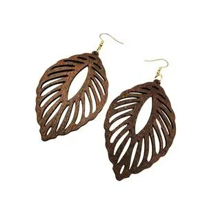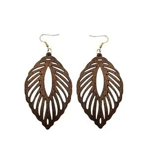 Hollow Leaf Earrings Wood Bohemian Dangle Boho Style Ear Jewelry Brown Gold