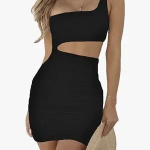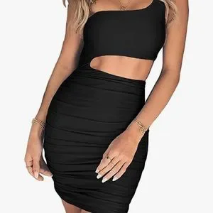 Size medium black, one shoulder cut out ruched dress from Amazon. I love this dress so much and it fits great, just never got around to wearing it and forgot to return! New with bag, never worn.