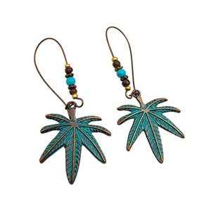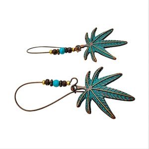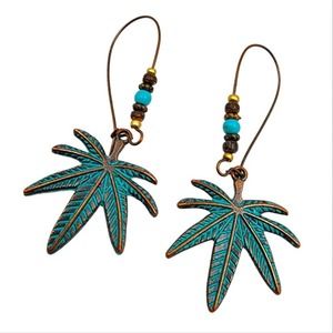 Leaf Metal Drop Earrings Bohemian Ear Jewelry Boho Style Blue