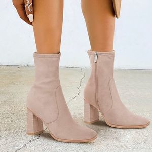 Only worn to try on indoors. *See photo of cosmetic flaw. Item arrived this way.* Size 9. Fits TTS. 3.15” heel. Color: Nude. Included product pics & info from website to reference. Description calls them “faux leather” but it’s more so suede. Pet & smoke free home. Open to offers, bundle to save.