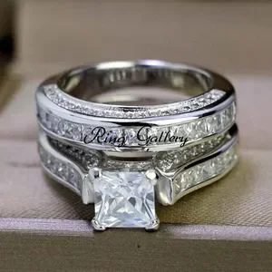 Wedding Ring Set Engagement Ring 925/14k Sterling Silver size 5,6,7,8,9,10,11,12