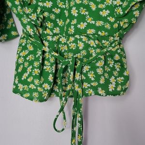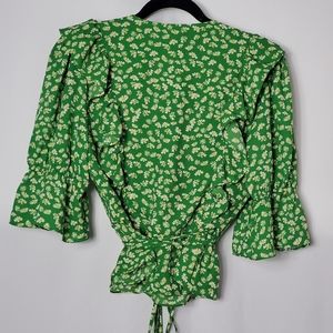WAYF Floral Ruffle Peplum Wrap Blouse - Small