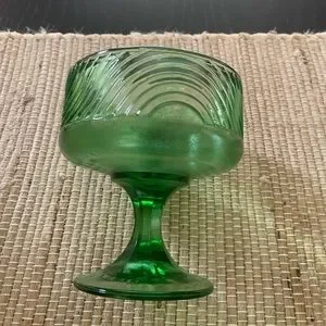 Vintage EO Brody green pressed glass footed compote. Made in Cleveland Ohio. 5,5 inches high and across. In perfect condition for its age. Will pack carefully for shipping.