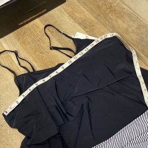 New Two Piece Tankini Swim Suit Black and White Striped Ruffle Accent XXL