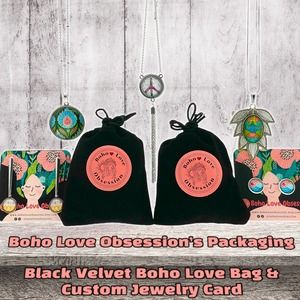 Each piece of boho jewelry comes packaged in its own black velvet gift bag and sealed with the official Boho Love Obsession sticker & custom tags. It will be bubble wrapped & shipped in a small white box.