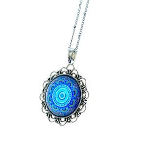 Add a splash of girly, bohemian flavor to your outfit when you wear our Mosaic Mandala Big Round Necklace. Stand out in this eye-catching statement piece, with its gorgeous filagree flower petal setting and bright turquoise glass center. This handcrafted boho necklace features a 25mm art glass pendant charm, surrounded by gorgeous filagree petals, measuring 1.2 inches around. This necklace has an 18 inch chain with a 2 inch extender for a total length of 20 inches and is adorned with 1mm decorative balls. Give off 1960s vibes plus old-fashioned elegance when you wear our Mosaic Mandala Big Round Necklace!
