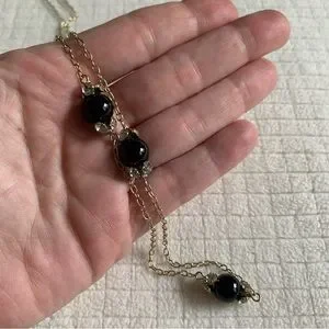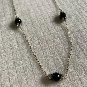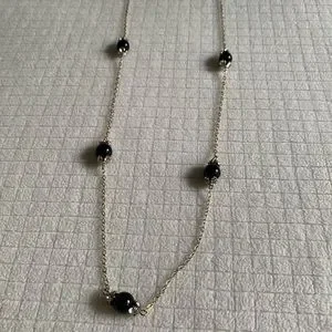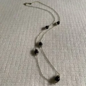 Simply beautiful long necklace from J.Crew dotted with sleek black beads adorned with rhinestone accents. Buoy clasp. Brand charm. Lightweight! Measures 16” long. No known flaws. Professionally cleaned. Worn minimally. Well cared for. No box/dust bag. Excellent condition! HL:8
