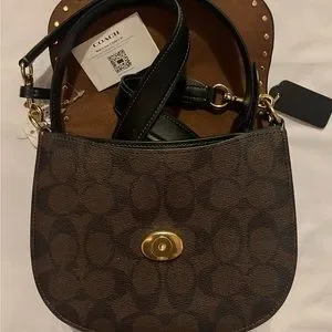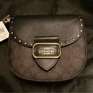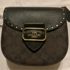 NWT Coach Morgan Saddle bag, signature logo, gold buckle closure hardware. Adjustable Shoulder strap. Studded flap open, Coach purse tag