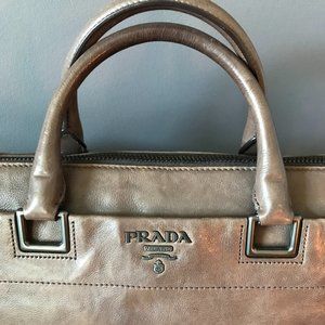 The beautiful vintage Prada bag is in really nice condition, with some minor rubs on the corners (see pictures) but no rips or tears in the leather. Gunmetal hardware. Two side pockets on the outside, and one inside the bag. Nice and clean inside, no smells. Comes with cross body strap as pictured. .