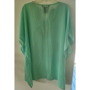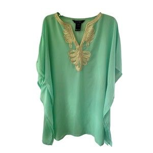 Charlie Paige Womens Turquoise Embroidered One Size Swim Cover Up Tunic Beach