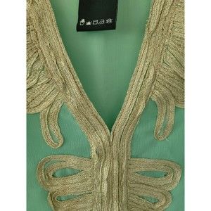 Charlie Paige Womens Turquoise Embroidered Cover up Blouse Top