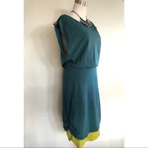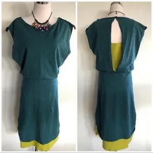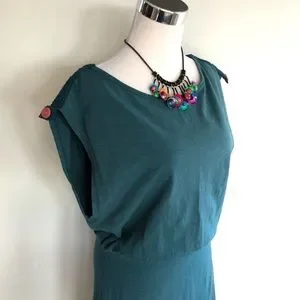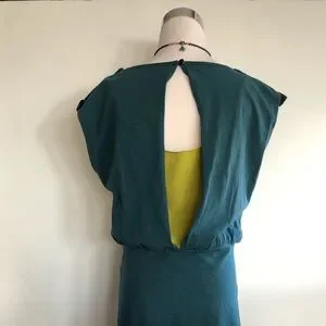 Pretty and comfy teal and green tank dress. It has an oversized tank bodice that drapes pretty on shoulders and waist. GoodHart Evening Date Dress.