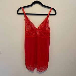 NWOT Red Sheer and Lace Babydoll Dress w/ Matching Thong