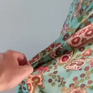 This very unique dress always gets tons of compliments! Green base with multi colored candy skulls in this fit and flare below knee cotton dress with pockets and back zipper