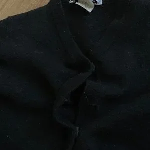Gorgeous little sweater from my personal archive. A non stretch wool material, button snap closure, and a great cropped length. Extremely flattering and perfect with your favorite high or low waisted denim/trousers. There is wearing/fuzzing on the surface of the wool and a button missing/last button off center (looks great half buttoned/open), in overall great condition ready to be styled. Best fits Xxs/Xs. Exact measurements below to ensure fit.🖤