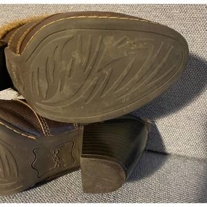 b.o.c. Woman’s leather clog size 7 brown leather faux fur inside and cuff heel