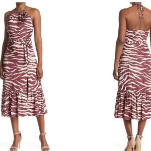 Paige Jade Zebra Print High Neck Backless Long Midi Dress Wedding Guest