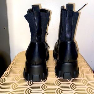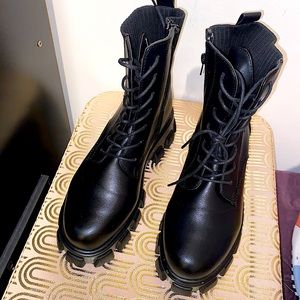 Black zip up boots with chunky sole. Has shoelaces but zips on the side. Worn once. size women’s 8. true to size. Very comfortable inside.