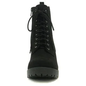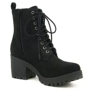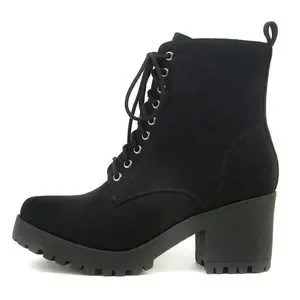 * Soda Women Chunky Thick High Heels Combat Lug Sole Ankle Boots Platform Lace Up Booties Side Zipper Fuzzy-S
