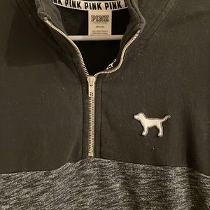 Victorias Secret PINK Love Pink Quarter Zip Medium Black & Gray