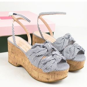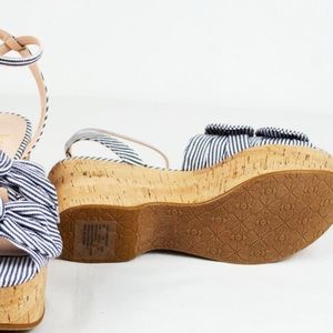 Don’t we love a good sandal that's both cute and versatile. it's also a fantastic way to show off your fresh pedi. Knotted bows top the vamp straps on this playful sandal raised on a chunky platform cork heel 3.25 and cushioned footbed this is perfect summer stylish wedge sandal💕