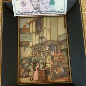 Delightful, vintage Franklin picture set. Foil style depicting English village shops. Foil lithographs give the artwork and iridescent look. Franklin number on back is #1067 on each and sold as a pair. Prints and frames included and in very good condition.