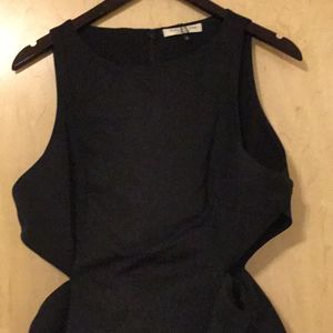 Halston Heritage Women's SL Boatneck Strctured Satin Faille Dress W Cut Out with packets