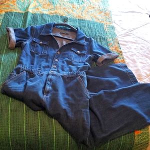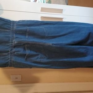 Like new, worn twice! Perfect denim one-piece. Button closure on top, zipper fly, elasticized waist. Pockets! Size M fits roughly like an 8-10.