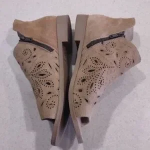 Coolway Tan Nelia Perforated Leather Side Zip Peep Toe Shoes Size 41/US 10 EUC