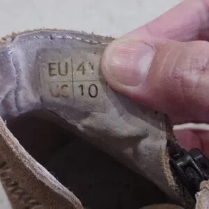 Shoes are listed as a Woman's European size 41 / US size 10. However, these shoes tend to run small, so a 41 in this style equates to a size 9 in US.