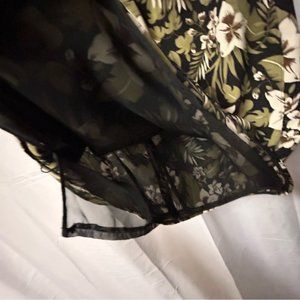 Look no further for a timeless wardrobe addition! Our 100% silk Faux Wrap skirt with khaki leaves and cream to brown flowers has you covered.