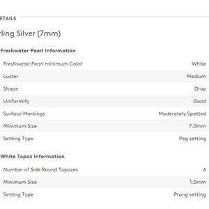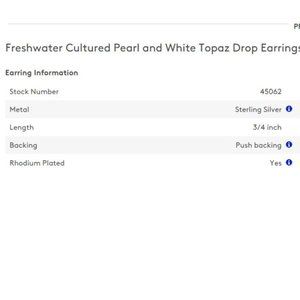 Demurely styled white drop pearls are accented with subtly glittering white topaz gemstones set in sterling silver.