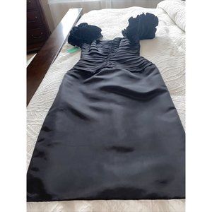 Tadaski Black Crepe Puff Sleeves Formal Knee Length Dress Size 10 NWT Excellent