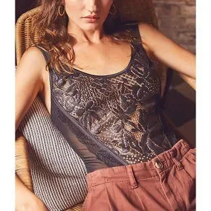 Made for your next night out, this feminine bodysuit features soft mesh paneling and lacey detailing with shiny satin shoulder straps.