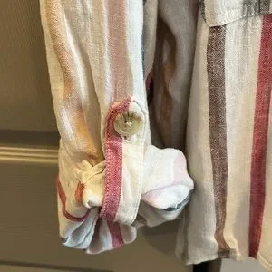 American Eagle Multicolored Striped Linen Blend Long Sleeve Button Down with Roll and Button Cuffs, Size Extra Large