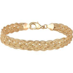 18K Gold Plated Strand Braided Herringbone Mesh Bracelet
