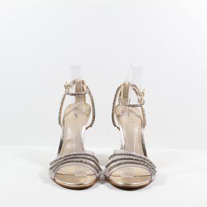 Schutz Rowena Crystal-Embellished Leather Sandal - Champagne 11B
