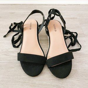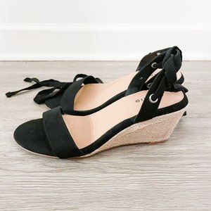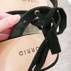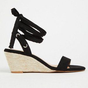 Torrid Black Faux Suede Ankle Wrap Espadrille Demi Wedge