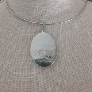 Floral Pendant Silver Tone Circle Necklace (C 1945)