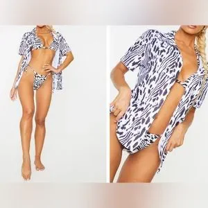 Multi Animal Print Towel Beach Shirt & BIKINI SET